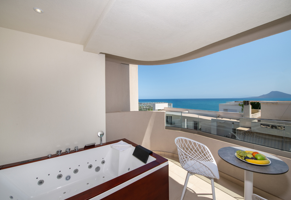 Bei gleicher Ausstattung wie die Standard-Doppelzimmer verfügen sie über einen Whirlpool auf dem Balkon (DSW).